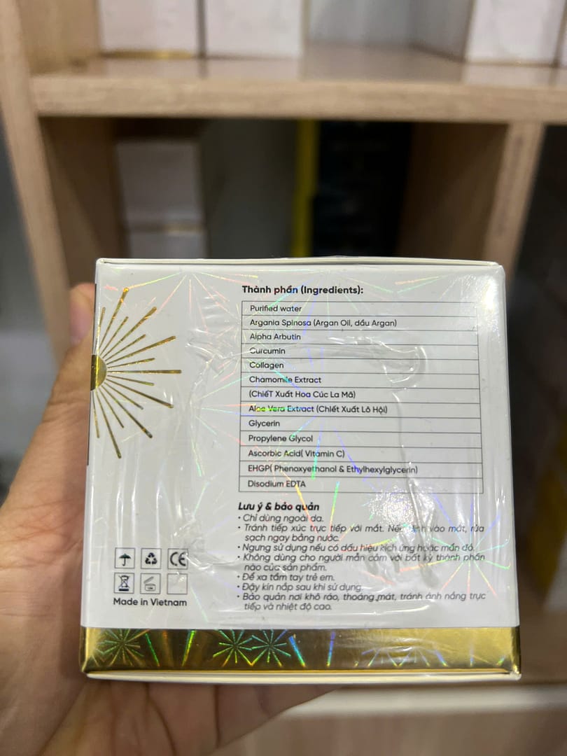 VỀ THÀNH PHẦN: tinh dầu nghệ, tinh bột nghệ, sữa bò cô đặc, collagen, spf 45, viatamin A, E, C …